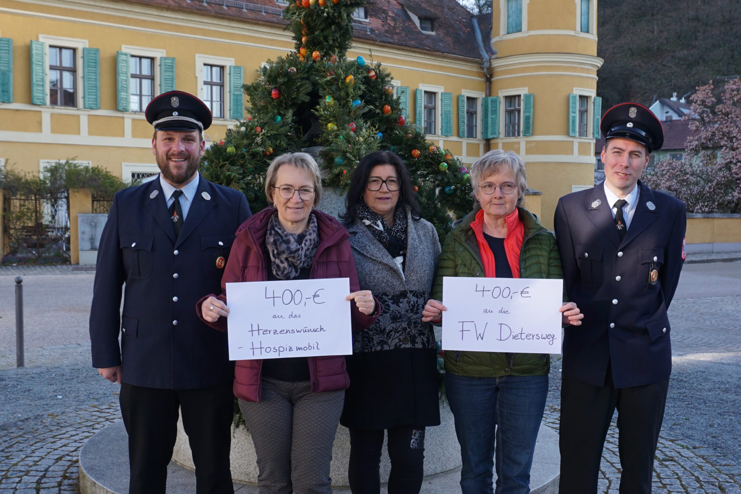 Der Arbeitskreis Wiesenter Frauen haben sich beim Weihnachtsmarkt mit einem Kaffee- und Kuchenverkauf beteiligt. Aus dem Erlös wurden wir mit einer Spende bedacht. Arbeitskreissprecherin Sibylle Steinbach, die Führungskreismitglieder Gerda Gritschmeier und Sabine Schreiner überreichten uns 400 Euro. Die Frauen betonten, die Wehr trage neben den Hilfestellungen in Notfällen einen wichtigen Teil zum Ortsleben bei. Die Dietersweger Frauen seien tatkräftige Helferinnen bei den Arbeitskreis-Aktionen, fügte Steinbach an.