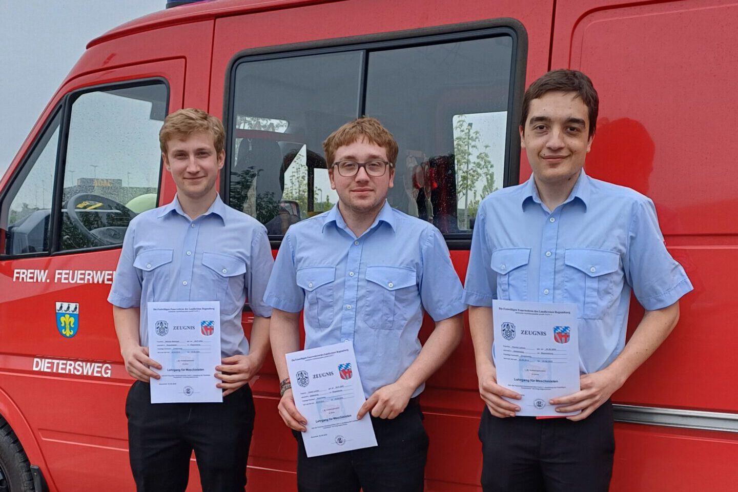 Unsere jungen Einsatzkräfte Nikolas Meilinger, Fabian und Florian Lehner haben den Maschinisten-Lehrgang absolviert. Eine Woche und zwei Samstage lang erlernten sie alles Wichtige, was ein Maschinist wissen muss. Kommandant Martin Bauer und seine Stellvertreterin Sandra Meilinger beglückwünschten die neuen Funktionsträger. Bei der Zeugnisverleihung war auch Bürgermeisterin Elisabeth Kerscher dabei, die allen dankte, die sich dieser Aufgabe stellten. Wir freuen uns, dass sich Niko, Fabi und Flori Zeit genommen haben und in Zukunft an der Pumpe „ihren Mann stehen“.