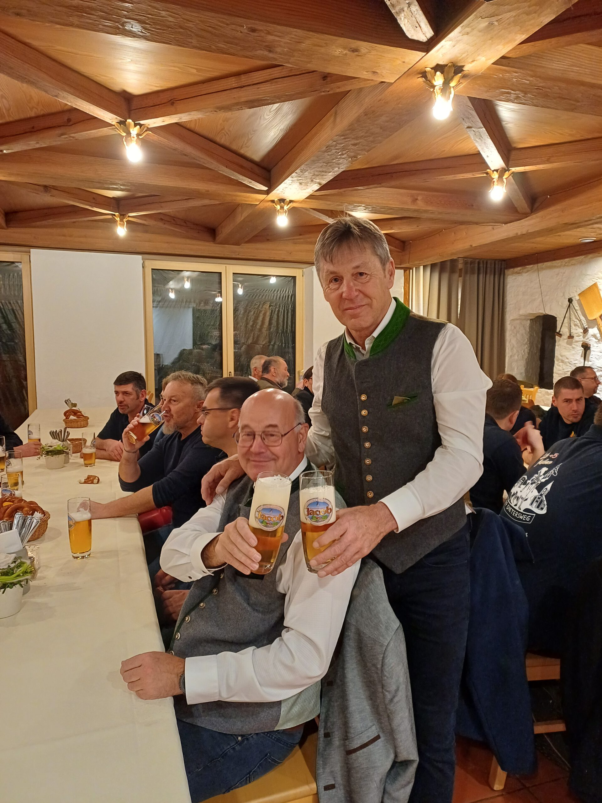 Am Samstag wurden wir von der Brauerei Jacob und unserem geschätzten Festwirt Alois Hamperl zur Bierprobe eingeladen. Gemeinsam ging es mit dem Bus und unserem Busfahrer Mich zum Brauerei-Gasthof. Im Bus herrschte bereits große Vorfreude. Wir wurden von Inhaber Fritz Jacob, Verkaufsleiter Richard Schottenloher und Disponent Ludwig Binder herzlich empfangen. Bei einer spannenden Führung haben wir viele wissenswerte Details über die Braukunst und die Tradition der Brauerei erfahren. Höhepunkt des Abends war der Fassanstich durch unseren Schirmherrn Hubert Tausendpfund. Das süffige Festbier schmeckte vorzüglich und ein köstliches Schnitzel mit Kartoffelsalat rundete den Abend perfekt ab.